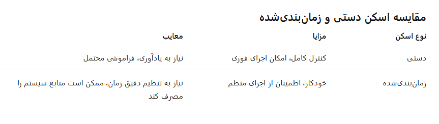 کنترل بهتر منابع: میتوان زمان اسکن را به ساعات کممصرف اختصاص داد